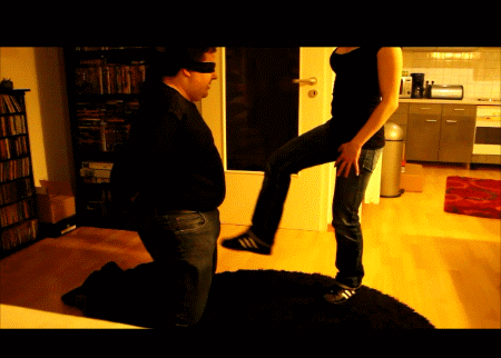 Ja auch Sneaker eignen sich gut für deine Eierfolter! Sie haben stahlharte Kappen und können dich so richtig in die Knie zwingen!
