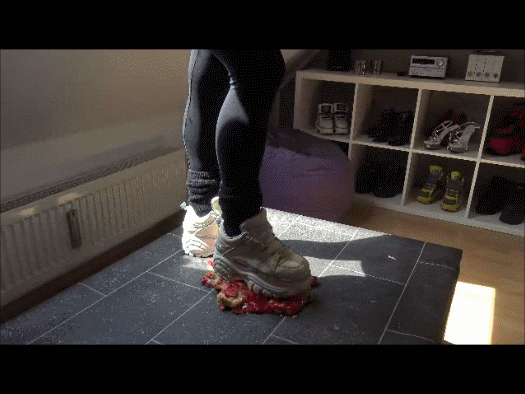 Jetzt werde ich mal wieder eine kleine Sauerei veranstalten: ich crushe ein paar Erdbeerteilchen mit meinen weißen Lack Buffalos! Aber siehe da. Unter dem Gematsche kommt auf einmal ein Gesicht zum Vorschein. Also habe ich nun auch noch passend eine Fressluke, in die ich die gecrushten Leckereien reinschieben kann!