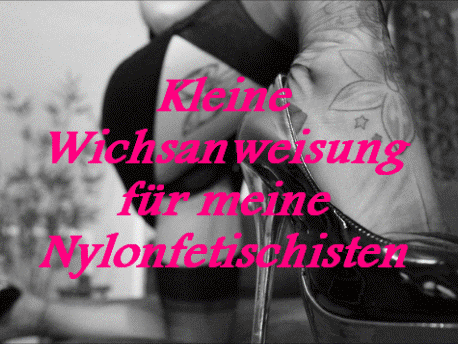 Da ist ja meine kleine Nylonsau! Knie dich mal brav hin und genieße den Anblick meiner Beine und Füße in Nylons – schön verpackt in scharfen Pumps. Komm ruhig mal eher und komm in den Genuss meiner Füße. Was sehe ich denn da? Die kleine Sau platzt ja gleich vor Geilheit. Dann fang mal schön an zu wichsen und spritz auf mein Kommando! 10 … 9 … 8 … … und los!